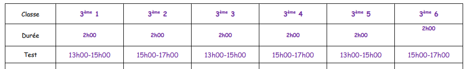 La certification PIX 3ème aura lieu le jeudi 2 avril après-midi, selon le planning suivant :